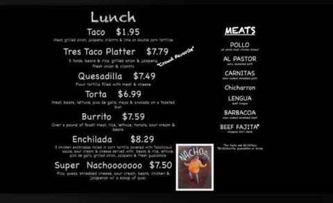 Fresh corn chips, meat, beans, queso, and shredded cheese. Served with lime, lettuce, pico, guacamole, sour cream, and sliced jalapeno.